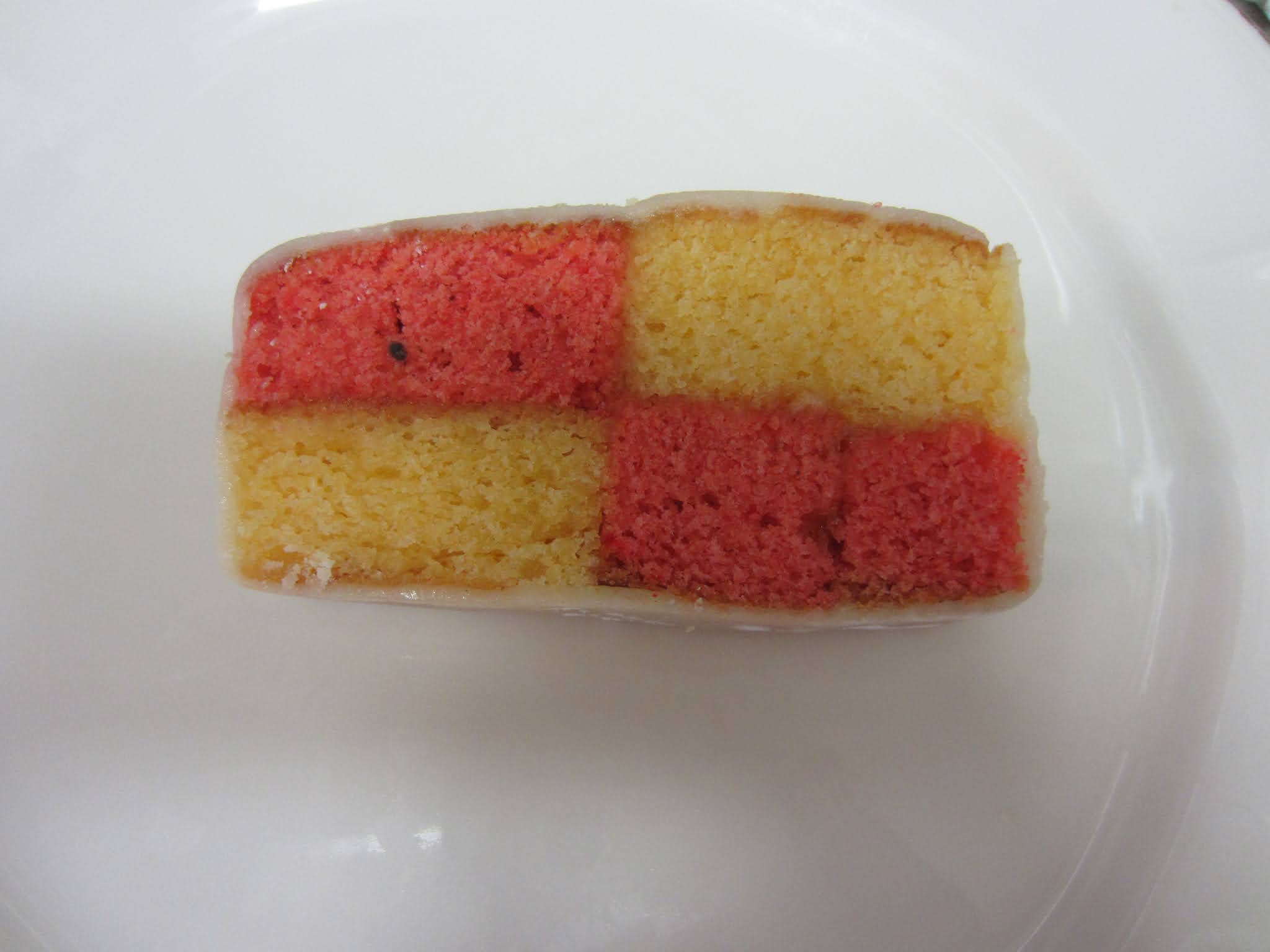 イギリスで古くから親しまれている「お茶の友」 バッテンバーグ 響きから連想されるようにドイツにあるバッテンベルグ市の名が付けられています イギリスではスーパーで買える手軽なお菓子ですが日本では見かけたことがなく 今回9月の料理講習会でご紹介いたしました 16日より数量限定で販売することになりました(持帰りのみ) 22日頃までの期間限定ですがなくなり次第終了といたします ご了承ください サイズは1切れ/ブロック(3切れ分) の2種 ベーシックなタイプに加え、ココア風味、抹茶風味も若干数用意しました 休憩時間のお役に立てればと思います ご利用ください (写真上からベーシック/抹茶/ココア)